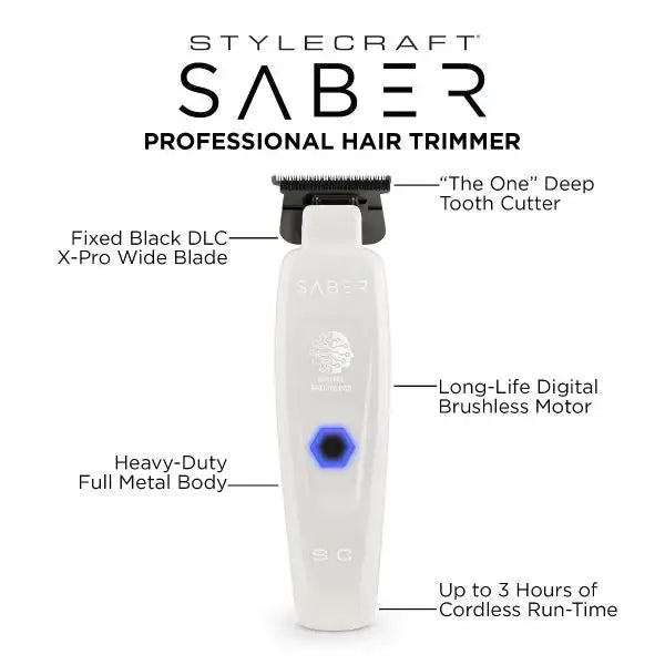 StyleCraft S|C SABER PROFESSIONAL HAIR TRIMMER WITH DIGITAL BRUSHLESS MOTOR – White SC421W